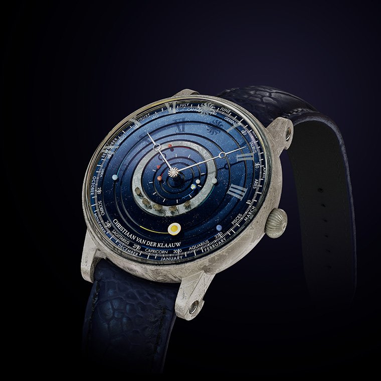 Christiaan van der Klaauw หรือ CVDK จารึกร่องรอยการเดินทางข้ามห้วงเวลาและอวกาศบนเรือนเวลาสุดเอ็กซ์คลูซีฟ Grand Planetarium Eccentric Meteorite ตัวเรือนสกัดจากอุกกาบาตที่มีลวดลายตามธรรมชาติของเนื้อหินที่ชื่อว่า Widmanstätten เกิดจากปรากฏการณ์ธรรมชาติของวัตถุในอวกาศซึ่งเย็นตัวลงอย่างช้า ๆ เป็นเวลาหลายล้านปี หน้าปัดอะเวนทูรีนจำลองความงดงามของท้องฟ้ายามค่ำคืน และกลไกที่จำลองการโคจรของดาวเคราะห์ในระบบสุริยะได้อย่างสมบูรณ์แบบ