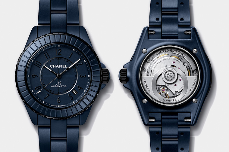 J12 BLEU คาลิเบอร์ 12.1 โดดเด่นด้วยตัวเรือนเซรามิกสีนํ้าเงินด้านขนาด 38 มม. ขอบตัวเรือนเคลือบสีดำและตำแหน่งแสดงเวลาเคลือบเงาซึ่งสะท้อนถึงเอกลักษณ์ที่แท้จริงของคอลเลคชั่นนี้ ขอบตัวเรือนเซรามิกยังได้รับการตกแต่งด้วยลวดลายบาแก็ตต์เพื่อความหรูหราเหนือระดับนาฬิกาไอคอนเรือนใหม่นี้มาพร้อมกับคาลิเบอร์ 12.1 ระบบกลไกแบบไขลานอัตโนมัติที่ผ่านการรับรองความเที่ยงตรงจาก COSC* และมีพลังงานสำรอง 70 ชั่วโมง กลไกนี้ผลิตโดย Swiss Kenissi Manufacture ซึ่งแบรนด์ CHANEL ป็นเจ้าของร่วม