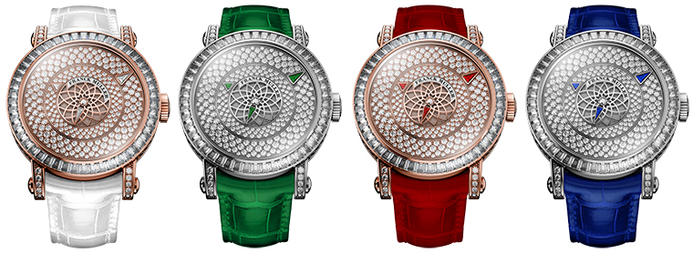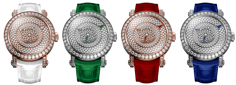 จานวินาทีถูกประดับด้วยเพชรรูปทรงสามเหลี่ยม ไทรแองเกิล-คัต ทำหน้าชี้แสดงวินาที อันเป็นองค์ประกอบการออกแบบที่แสนงดงาม และเป็นการจับภาพจังหวะอันต่อเนื่องของกาลเวลาด้วยความสง่างามที่น่าหลงใหล