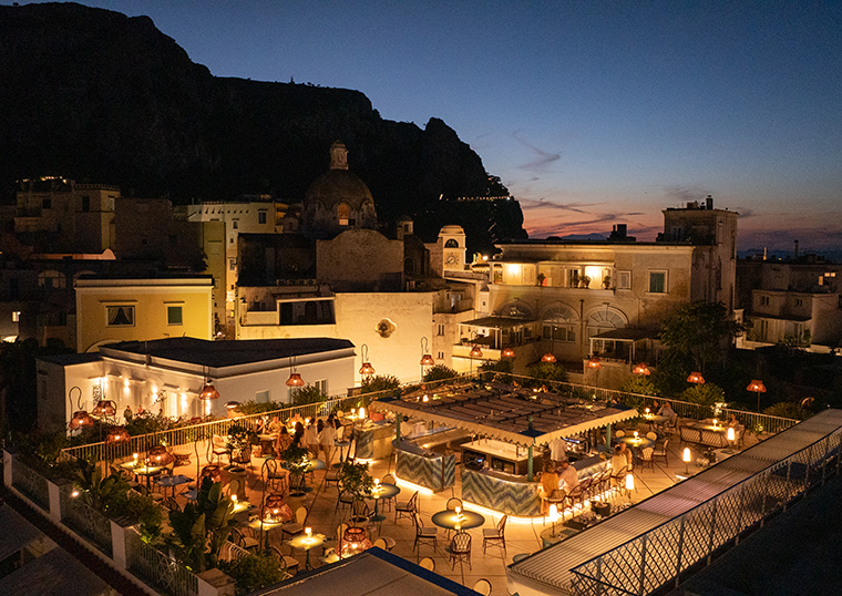 เบียงกา รูฟท็อป (Bianca Rooftop) คือส่วนหนึ่งของการพัฒนาอย่างต่อเนื่องของโรงแรม ที่นี่เตรียมเปิดตัวแนวคิดการรับประทานอาหารใหม่ที่น่าตื่นเต้น ซึ่งจะยกระดับการรับประทานอาหารบนรูฟท็อปในคาปรี ด้วยการผสมผสานแรงบันดาลใจจากสเต๊กเฮาส์คลาสสิกกับบาร์อาหารดิบ กลายเป็น เบียงกา รูฟท็อป การ์เน เอ กรูโด (Bianca Rooftop Carne & Crudo) โฉมใหม่ซึ่งนำเสนอการตีความที่ทันสมัยและโดดเด่นในการเสิร์ฟเนื้อชั้นดีและอาหารทะเลสด ๆ ผสมผสานทั้งความหรูหรา พลัง และชีวิตชีวาของคาปรี ยกระดับประสบการณ์การรับประทานอาหารให้เป็นความทรงจำที่ไม่อาจลืมเลือนใต้แสงดาว ที่ซึ่งรสชาติอันยอดเยี่ยมมาพร้อมกับวิวทิวทัศน์อันน่าตื่นตาตื่นใจและค็อกเทลที่สร้างสรรค์รสชาติอย่างประณีต