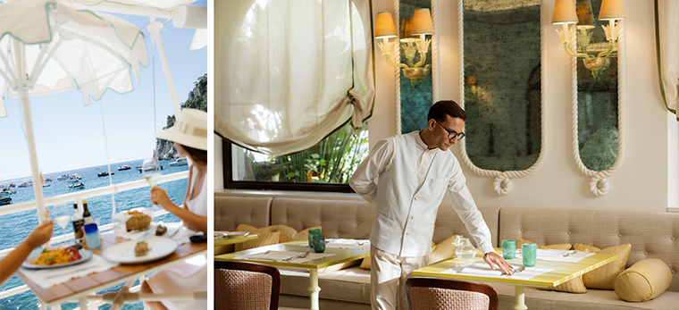 โฮเทล ลา ปาลมา ยังคงสร้างมาตรฐานใหม่สำหรับลักชัวรีไดนิ่งอย่างต่อเนื่อง ด้วยการคัดสรรเมนูอาหารที่ยอดเยี่ยม ซึ่งแต่ละจานได้รับการออกแบบมาเพื่อสะท้อนถึงความเป็นเอกลักษณ์ของการต้อนรับแบบอิตาเลียนและเสน่ห์อันไม่สามารถเลียนแบบของเกาะคาปรี