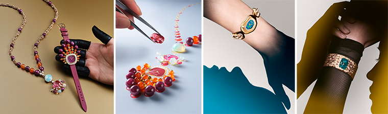 รูบี้รูท เทอร์ควอยซ์ และไทเกอร์อาย เป็นต้น ประดับลงบนสายโซ่ที่ถักร้อยด้วยฝีมืออย่างมีเอกลักษณ์ของเมซง ซึ่งได้รับการรังสรรค์อย่างพิถีพิถันจากช่างทองระดับปรมาจารย์