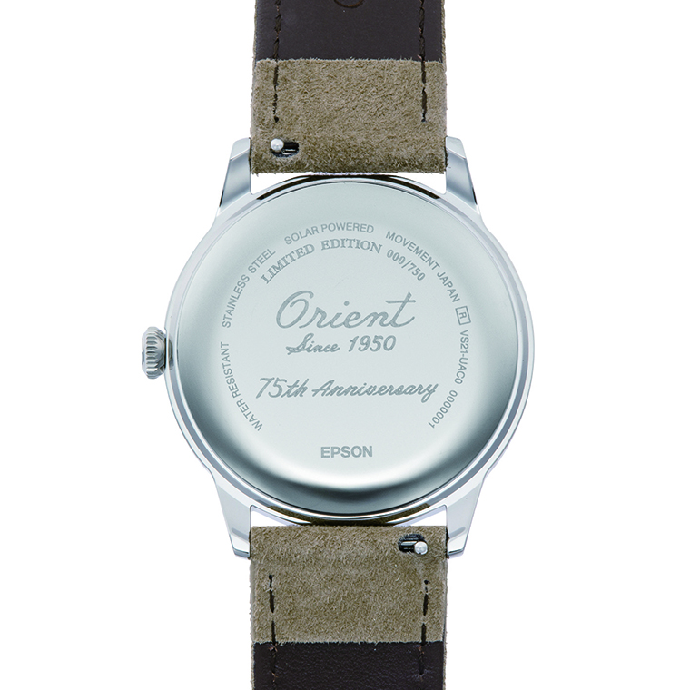 มาร่วมเฉลิมฉลองครบรอบ 75 ปี ไปกับเรือนเวลา Classic Collection ที่เป็นดั่งตัวแทนในสไตล์ดั้งเดิมของ Orient อย่างซีรีส์ คลาสสิค แอนด์ ซิมเพิล สไตล์ ซึ่งเป็นซีรีส์ยอดนิยมที่ขายดีไปทั่วโลก เสมือนตัวแทนของทุกสิ่งที่เป็น Orient โดยความโดดเด่นของซีรีส์นี้ได้แฝงอยู่ในทุกส่วนต่างๆ ของนาฬิกาไม่ว่าจะเป็นหน้าปัดโค้งแบบคลาสสิกดั้งเดิม กระจกทรงโดมที่ให้ความรู้สึกย้อนยุค และดีไซน์ตัวเรือนที่ละเอียดอ่อนพร้อมขาตัวเรือนที่เรียวบาง ความพิเศษอันเนื่องมาจากเป็นรุ่นลิมิเต็ดอิดิชั่นที่ผลิตมาเพื่อโอกาสนี้ถูกนำเสนอทั้งหมด 3 รุ่นได้แก่ Bambino Classic & Simple (Ref.RA-AC0027S) ผลิต 9,500 เรือน ที่มาในรูปแบบคลาสสิคด้วยหลักบอกเวลาแบบเลขโรมัน บนขนาดตัวเรือน 40.5 มม. และรุ่น Bambino Sun & Moon (Ref.RA-AK0808S) ผลิต 5,500 เรือน ที่มาพร้อมหน้าปัดแสดงเวลากลางวันและกลางคืน ผ่านสัญลักษณ์พระอาทิตย์และพระจันทร์ บนขนาดตัวเรือน 41.5 มม. นาฬิกาทั้ง 2 รุ่นนี้ทำงานโดยบอกเวลาผ่านเครื่องอัตโนมัติ in-house ที่ผลิตภายในโรงงานของ Orient เอง สามารถสำรองพลังงานได้ถึง 40 ชั่วโมง และรุ่นที่สาม Bambino Classic & Simple Solar Power (Ref.RA-WK0006S) ซึ่งเป็นครั้งแรกของการนำเครื่องระบบโซล่าร์ พาวเวอร์มาใช้กับนาฬิกาสไตล์คลาสสิค ซึ่งผลิตเพียง 750 เรือนเท่านั้น กับขนาดตัวเรือน 38 มม. ซึ่งสามารถสะสมพลังงานไว้ได้นานถึง 6 เดือนในกรณีที่แบตเตอรี่เต็ม จึงทำให้สะดวกต่อการใช้งานในทุกๆ วัน โดยนาฬิกาทั้งสามรุ่นนี้จะมีรูปลักษณ์ในสไตล์วินเทจ ที่โดดเด่นด้วยโลโก้ “Orient” ตัวเขียนลายมือของยุค 1950 บนหน้าปัดสีขาว เข็มนาฬิกาสีน้ำเงินตัดกับหลักบอกเวลาสีทองชมพู และสายหนังนูบัคสีเบจ สไตล์เรโทร โดยรุ่นกลไกอัตโนมัติจะมาในแบบฝาหลังใสเผยให้เห็นกลไก ส่วนรุ่นโซล่าร์ พาวเวอร์จะมาในแบบฝาหลังทึบ โดยทั้งสามรุ่นจะมีตรา “Orient Since 1950 75th Anniversary” ที่ฝาหลังนาฬิกาทุกเรือน และระบุหมายเลขประจำตัวเรือนพร้อมกับคำว่า “Limited Editon” โดยทั้งหมดนี้จะมาในแบบ Box Set 75th Anniversary พร้อมกับสายหนังลูกวัวที่ให้คุณสามารถเลือกเปลี่ยนเองได้ตามความชื่นชอบ ช่วยสร้างความรู้สึกถึงการเฉลิมฉลองให้กับรุ่นครบรอบ 75 ปีได้มากยิ่งขึ้น
