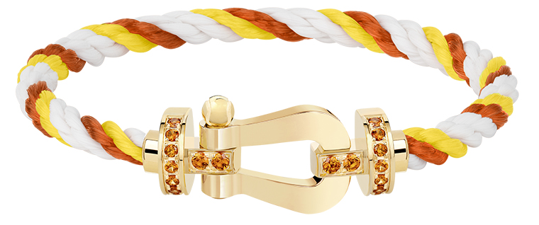 เมซง FRED ได้เผยโฉมแคปซูลคอลเล็กชั่นใหม่ล่าสุดของสร้อยข้อมือ Force 10 Roland-Garros ซึ่งมาพร้อมดีไซน์ที่สามารถสลับเปลี่ยนได้ทั้งบักเคิลและสายเคเบิล เต็มเปี่ยมด้วยสีสันและเอกลักษณ์เฉพาะตัวของทัวร์นาเมนต์ที่ถูกนำมาตีความใหม่ในสไตล์เรียบหรูอันเป็นเอกลักษณ์ของเมซงอย่างลงตัว บักเคิลตัวเรือนทองคำสีเยลโลว์โกลด์มีให้เลือกทั้งในโมเดล Large ซึ่งประดับด้วยโกเมนสีส้มแมนดารินจากสีเหลืองอมน้ำตาลของดินเหนียว พร้อมสลักสัญลักษณ์ลูกเทนนิสไว้ที่ด้านข้างของบักเคิล และโมเดล Medium ถ่ายทอดความสง่างามอย่างประณีตด้วยการประดับเพชรสีขาว เพชรสีเหลือง และอัญมณีล้ำค่าในโทนสีที่ไล่เฉดตามแสงของดวงอาทิตย์