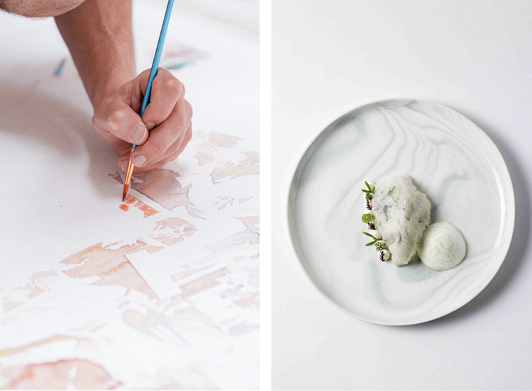 เมื่อก้าวเข้าสู่ห้องอาหาร ปิก แอท โบ-ริวาจ พาเลซ (Pic at Beau-Rivage Palace) แขกทุกท่านจะได้รับการต้อนรับด้วยภาพวาดสีน้ำขนาดใหญ่ ซึ่งเชฟร่วมออกแบบสร้างสรรค์กับจิตรกรชื่อดังชาวสวิส เพื่อเชิดชูและเป็นเกียรติแก่ผู้ผลิตท้องถิ่น ผ่านการแสดงออกทางงานศิลปะชิ้นนี้