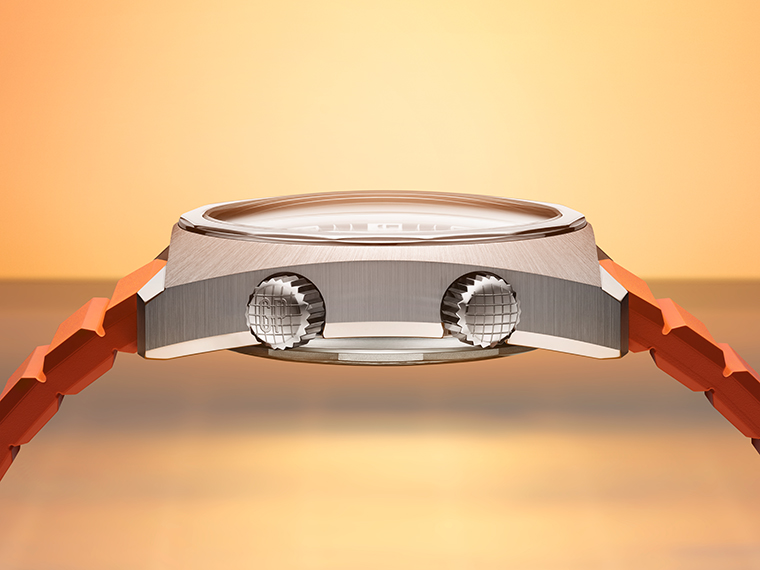 จิตวิญญาณแห่งการมองไปข้างหน้าถูกสะท้อนผ่านนาฬิกา Deep Diver รุ่นปี 1969 ซึ่งผสานระบบ Gyromatic เข้ากับการออกแบบ — ระบบการขึ้นลานอัตโนมัติแบบสองทิศทางที่ช่วยเพิ่มประสิทธิภาพในการใช้พลังงานอย่างต่อเนื่อง นวัตกรรมทางเทคโนโลยีที่ยังมอบความแม่นยำ ที่เหนือชั้นให้กับกลไกของนาฬิกาที่ได้รับการออกแบบให้ตอบสนองต่อการเคลื่อนไหวของข้อมืออย่างเป็นธรรมชาติ ทั้งทนทานและประณีต สะท้อนถึงความเชี่ยวชาญทางเทคนิคในยุคสมัยนั้น