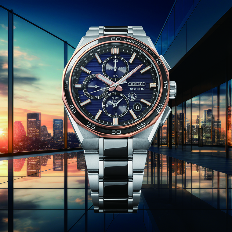 ในปี 2012 Seiko ได้สร้างปรากฏการณ์ใหม่ให้กับโลกแห่งนาฬิกาอิเล็กทรอนิกส์ ด้วยการเปิดตัว Astron GPS Solar นวัตกรรมที่สามารถเชื่อมต่อกับระบบกำหนดตำแหน่งบนพื้นโลก (GPS) และปรับเวลาให้ตรงกับทุกเขตเวลาทั่วโลก* โดยอาศัยพลังงานจากแสงเพียงอย่างเดียว เกือบหนึ่งปีที่ผ่านมา Seiko ได้เปิดตัวกลไก Caliber 5X83 รุ่นใหม่ ที่ผสานเทคโนโลยี Dual-Time เข้ากับฟังก์ชันจับเวลา (Chronograph) เป็นครั้งแรก ตัวกลไกสามารถเชื่อมต่อกับเครือข่าย GPS ได้อัตโนมัติสูงสุดวันละสองครั้ง และยังสามารถสั่งเชื่อมต่อแบบแมนนวลได้เพียงแค่กดปุ่มเดียว เพื่อให้มั่นใจว่าเวลาจะยังคงแม่นยำไม่ว่าจะอยู่ที่ใดในโลก** และวันนี้ Seiko ขอสานต่อตำนานแห่งนวัตกรรมด้วยการเปิดตัว นาฬิกา GPS Solar Dual-Time Chronograph รุ่นใหม่ล่าสุดถึง 4 รุ่น ภายใต้คอลเลคชัน Astron โดยทุกรุ่นมาพร้อม ขอบตัวเรือนไทเทเนียม เสริมด้วยกระจกคริสตัลแซฟไฟร์ ที่เปล่งประกายและทนทานอย่างหรูหรา สมบูรณ์แบบทั้งในด้านเทคโนโลยีและงานดีไซน์