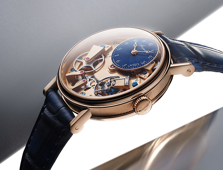 คอลเลกชัน Tradition ได้นำเสนอโทนสีอันเป็น “เอกลักษณ์เฉพาะของแบรนด์” เป็นครั้งแรก ได้แก่ สีทอง Breguet Gold และ และสีน้ำเงิน Breguet Blue
