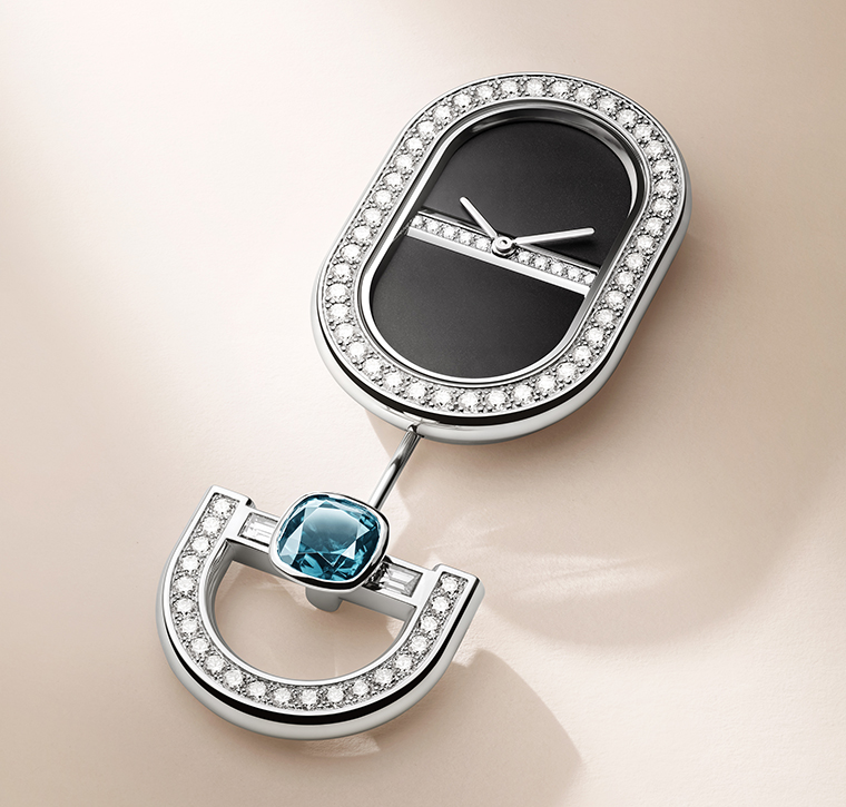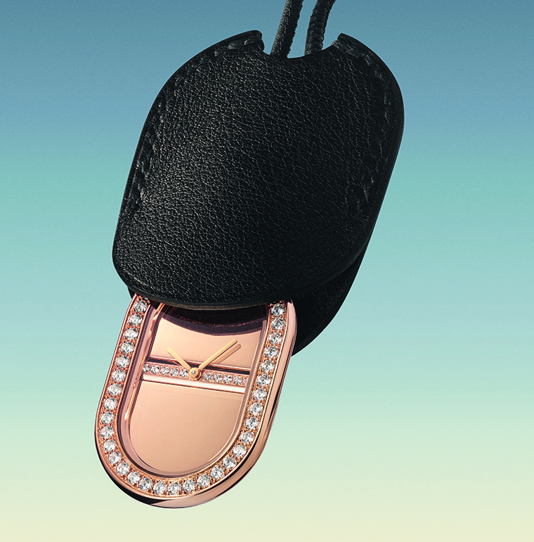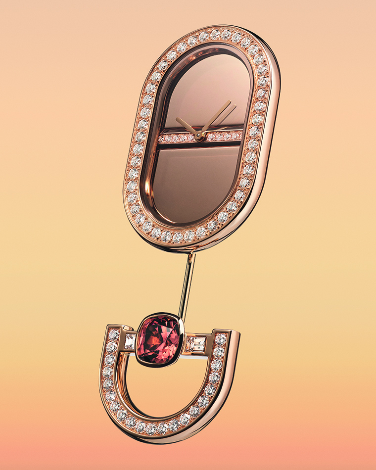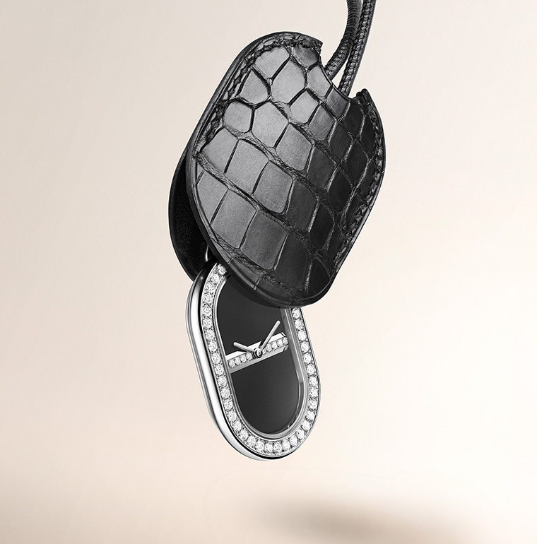 ส่วนนาฬิกาเข็มกลัด ที่นับเป็นหนึ่งในเครื่องประดับของสุภาพบุรุษยุคโบราณ รวมถึงเป็นสิ่งของคู่กายสำหรับเหล่านักเดินทางส่วนใหญ่นี้ ยังสามารถสวมใส่ได้ทั้งแบบเข็มกลัด หรือเปลี่ยนรูปแบบไปเป็นจี้ ที่มาพร้อมกับสายหนังคอร์ดเล็ตอันเป็นผลลัพธ์มาจากมรดกแห่งการทำหนังและเครื่องอานม้าของแบรนด์