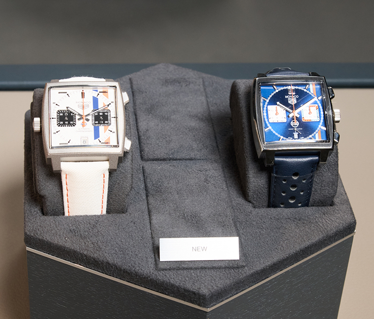 การกลับมาครั้งนี้ TAG Heuer เปิดตัวนาฬิการุ่นลิมิเต็ดจากคอลเลกชัน TAG Heuer Monaco ทั้งหมด 2 รุ่น ได้แก่ นาฬิการุ่น TAG Heuer Monaco Chronograph Stopwatch ที่ผลิตจำนวนจำกัดเพียง 970 เรือนทั่วโลก โดยใช้แรงบันดาลใจจากนาฬิกาจับเวลา Heuer ในช่วงทศวรรษ 1970s ซึ่งเป็นยุคทองของแบรนด์และมอเตอร์สปอร์ต ขับเคลื่อนด้วยกลไก Calibre 11 ที่สืบทอดจากรุ่นดั้งเดิม สายหนังลูกวัวเจาะรูได้แรงบันดาลใจจากถุงมือขับรถแข่งในอดีต ถ่ายทอดจิตวิญญาณแห่งความแม่นยำและสมรรถนะสูงในแบบ TAG Heuer พร้อมนาฬิกา TAG Heuer Monaco Chronograph x Gulf รุ่นใหม่ ถ่ายทอดจิตวิญญาณแห่งความเร็วจากรุ่นต้นแบบปี 1969 ด้วยกลไก Calibre 11 และเม็ดมะยมด้านซ้ายอันเป็นเอกลักษณ์ และแรงบันดาลใจจากชุดแข่งของ Steve McQueen ในภาพยนตร์เรื่อง Le Mans สู่ดีไซน์หน้าปัดสีเงินโดดเด่นด้วยลายเส้นสีฟ้า-ส้มอันเป็นเอกลักษณ์ของ Gulf และโลโก้ Heuer แบบวินเทจ ตัวเรือนขัดทราย มาพร้อมสายผ้าสีขาวตามแบบของชุดแข่ง และสายหนังลูกวัวสีน้ำเงิน ผลิตในจำนวนจำกัด 971 เรือน อันเป็นการรำลึกถึงภาพยนตร์เรื่อง Le Mans ที่ออกฉายในปี 1971 และยังสะท้อนรากเหง้าแห่งจิตวิญญาณมอร์เตอร์สปอร์ตและความร่วมสมัยของ TAG Heuer ได้อย่างลงตัว