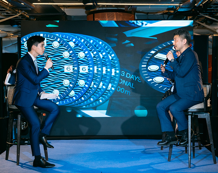 เริ่มต้นค่ำคืนแห่งการเฉลิมฉลองด้วยการกล่าวต้อนรับจากผู้บริหาร คุณทาคาชิ อาโอกิ – Managing Director of Seiko Thailand และปิดท้ายด้วยการพูดคุยกับคุณ ทาคูมิ คิชิโนะ – Senior Manager, Design Director Product Design Dept. ที่บินลัดฟ้ามาจาก Seiko Watch Corporation เพื่อมาส่งต่อเรื่องราวการเดินทางของวิวัฒนาการแห่งนาฬิกาดำน้ำจาก Seiko พร้อมบอกเล่าเส้นทางและแรงบันดาลใจในการออกแบบนาฬิกาเพื่อการเฉลิมฉลองในวาระ 60 ปี นาฬิกาดำน้ำทั้ง 3 เรือนในค่ำคืนนี้อีกด้วย