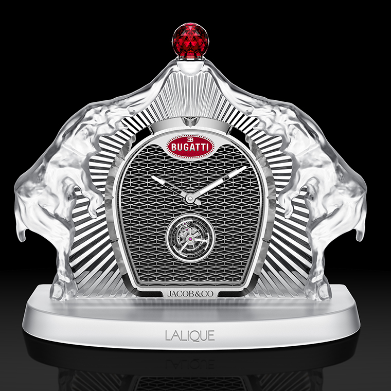 Jacob & Co. จินตนาการถึงผลงานที่ผสมผสานประวัติศาสตร์ของ Bugatti เข้ากับนาฬิการ่วมสมัย ซึ่ง Bugatti Calandre ก็ได้รวบรวมสายงานศิลปะอันล้าค่าของ Bugatti และตระกูล Bugatti ทั้งหมด ผสานรวมกับงานหัตถศิลป์ของ Lalique หนึ่งในผู้ผลิตคริสตัลที่มีชื่อเสียงที่สุด ก่อเกิดเป็นผลงานศิลปะสุดพิเศษของ objet d’art ที่รังสรรค์จากคริสตัลซึ่งผลิตในฝรั่งเศส ที่เต็มไปด้วยความสวยงามและละเอียดอ่อนไม่แพ้ความซับซ้อนทางเทคนิคด้านกลไกของ Bugatti Calandre นาฬิกา Bugatti Calandre จึงนับเป็นตัวอย่างอันดียิ่งของงานหัตถศิลป์ชั้นสูงและการแสดงออกทางศิลปะ ที่ช่วยให้ Jacob & Co. ได้สารวจวัสดุต่างๆ ที่ยังไม่ค่อยเป็นที่รู้จักในโลกของนาฬิกาข้อมือ