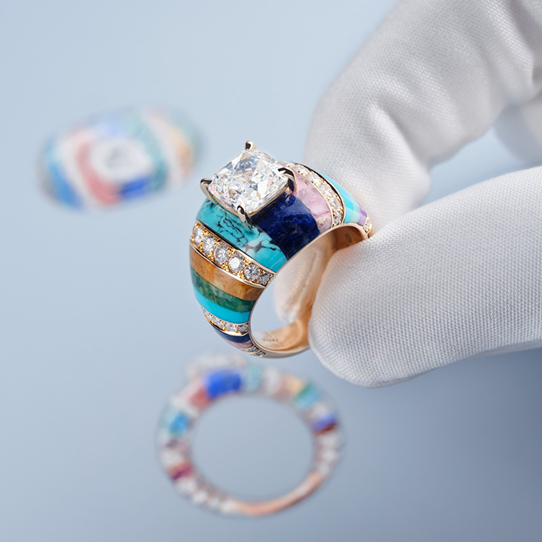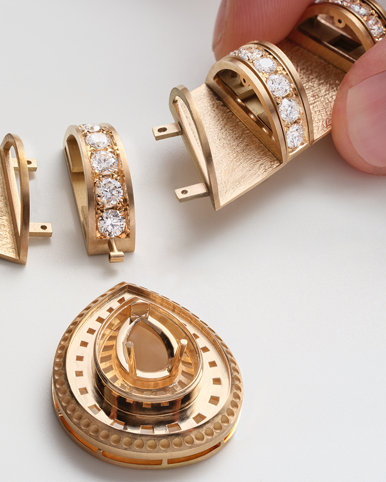 อัญมณีล้ำค่าทั้งหลายที่ผ่านการคัดสรรด้วยความเชี่ยวชาญ ไม่เพียงเพื่อให้ได้มาซึ่งความสวยงามและความหาได้ยากยิ่งเท่านั้น แต่หัวใจสำคัญไม่แพ้กัน คือ เพื่อให้ได้มาซึ่งอัญมณีที่มีคุณค่าทางศิลปะ เข้ากันได้เป็นอย่างดีกับธีมของเครื่องประดับแต่ละชุด ไปจนถึงมีบทบาทในการจัดองค์ประกอบที่สำคัญ ทั้งในแง่ของสีสัน แสง และรูปทรง ดังเช่น