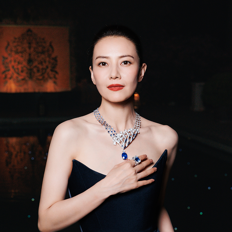 นักแสดงสาวชาวจีน Gao Yuan Yuan แอมบาสเดอร์และ friend of the Maison เลือกสวมใส่สร้อยคอรุ่น Carnation จากคอลเลกชันไฮจิวเวลรี่ Jewels by Nature ผลงานที่สร้างสรรค์ด้วยทองคำขาวที่โดดเด่นด้วยแซฟไฟร์สีน้ำเงินทรงไข่จากศรีลังกา (Ceylon) น้าหนัก 36.44 กะรัตงดงามเคียงคู่กับเพชรเจียระไนทรงสี่เหลี่ยมมุมมนเพชรเจียระไนทรงกลมและแซฟไฟร์ทรงกลมนอกจากนี้เธอยังเลือกสวมแหวน Carnation ทำจากทองคำขาวซึ่งประดับด้วยแซฟไฟร์สีน้ำเงินทรงไข่จากศรีลังกาเช่นกันน้ำหนัก 20.04 กะรัต เสริมด้วยแซฟไฟร์หลากขนาดและเพชรเจียระไนทรงหยดน้ำและทรงกลมเพิ่มความสง่างามให้กับลุคของเธอได้อย่างสมบูรณ์แบบ