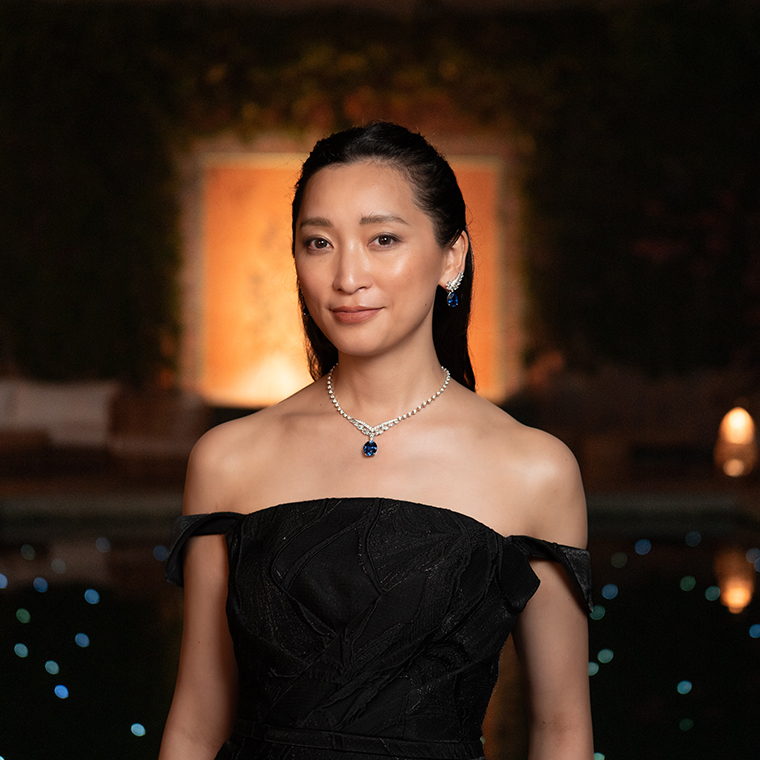 นักแสดงและนางแบบชาวญี่ปุ่น Anne สวมใส่สร้อยคอ Joséphine Valse Impériale ที่ทำจากทองคำขาวประดับด้วยแซฟไฟร์สีน้ำเงินจากศรีลังกา (Ceylon) น้ำหนัก 18.88 กะรัต พร้อมด้วยต่างหูทองคำขาวที่เข้าชุดกันประดับแซฟไฟร์ทรงหยดน้ำสองเม็ดจากศรีลังกาน้ำหนัก 10.44 และ 10.34 กะรัต รวมถึงเพชรเจียระไนทรงกลมและทรงหยดน้ำถ่ายทอดความสง่างามอย่างลงตัว
