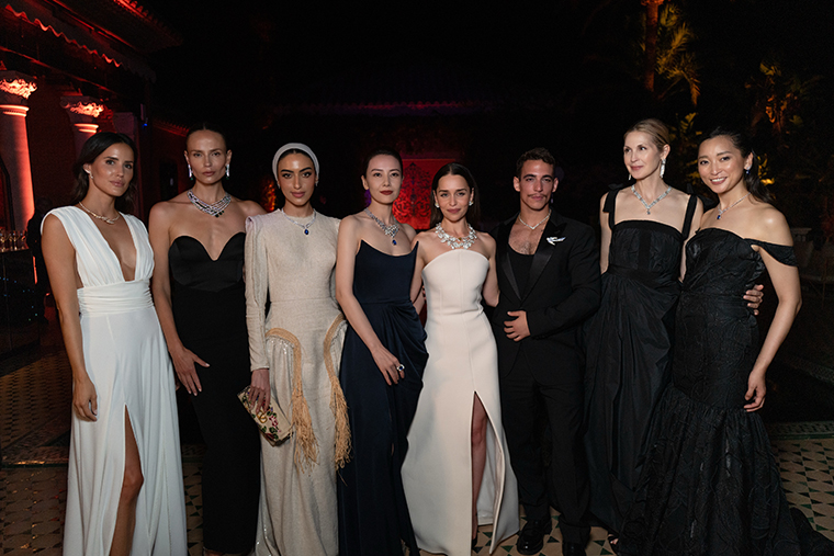 นักแสดงหญิงชาวอังกฤษชื่อดัง Emilia Clarke ปรากฏตัวอย่างสง่างามในงานนี้ด้วยสร้อยคอ Wild Rose ผลงานอันประณีตจากคอลเลกชัน Jewels by Nature ที่รังสรรค์ขึ้นจากทองคาขาวประดับเพชรเหลี่ยมมรกตสีเหลืองขนาด 8.23 กะรัตและเพชรเจียระไนทรงกลมพร้อมจับคู่กับต่างหูทองคำขาวประดับเพชรสีเหลืองที่สะท้อนถึงความอ่อนหวานและความงามจากธรรมชาติได้อย่างละเมียดละไม