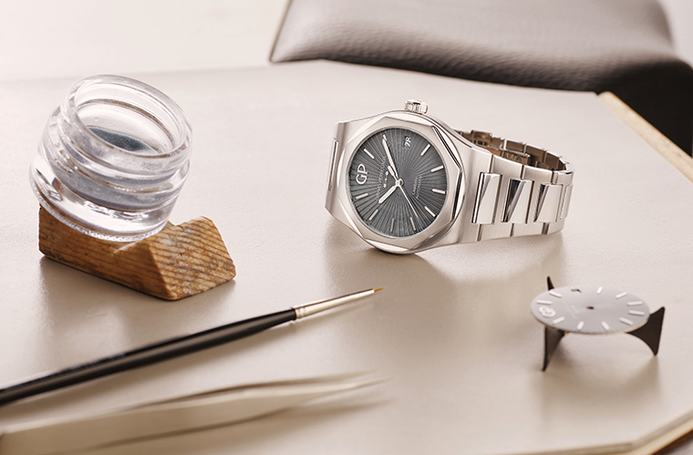 นับตั้งแต่เปิดตัวครั้งแรกในปี 1975 นาฬิกา Laureato ได้กลายเป็นสัญลักษณ์แห่งการประดิษฐ์นาฬิกาชั้นสูงที่ได้รับการยอมรับอย่างกว้างขวาง ด้วยดีไซน์ที่โดดเด่นและมีเอกลักษณ์ กลไกที่เป็นหัวใจในการทำงานผลิตขึ้นภายในโรงงานของแบรนด์เอง นำเสนอการขัดแต่งอย่างพิถีพิถัน เพื่อเป็นการรำลึกถึงความเป็นเลิศในศาสตร์แห่งการประดิษฐ์เครื่องบอกเวลาชั้นสูง Girard-Perregaux ภูมิใจนำเสนอผลงาน Laureato ในขนาด 42 มม. สะท้อนด้วยความเชี่ยวชาญในงานศิลปะดั้งเดิม พร้อมหน้าปัดเคลือบอีนาเมลสีเทาด้วยเทคนิค Grand Feu ที่มาสะกดทุกสายตา