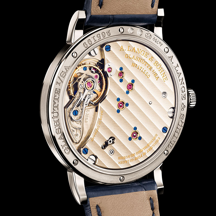 นาฬิกา 1815 รุ่นใหม่เปิดตัวในตัวเรือนขนาดเพียง 34 มิลลิเมตร หนาเพียง 6.4 มิลลิเมตร อันเป็นสัดส่วนที่มีความสง่างามและเรียบง่าย ลงตัวกับทั้งสุภาพบุรุษและสุภาพสตรี มีให้เลือกในสองรูปแบบ ได้แก่ ตัวเรือนไวท์โกลด์และพิงค์โกลด์ 750 ขอบตัวเรือนบาง เผยความงามของพื้นหน้าปัดสีน้ำเงินเฉดเฉพาะจากแบรนด์ที่บ่งบอกถึงการสร้างสรรค์เพื่อวาระพิเศษเท่านั้น มาพร้อมรายละเอียดของแทร็คนาทีแบบรางรถไฟ ตัวเลขอารบิก เข็มนาฬิกา และหน้าปัดย่อยแสดงวินาทีที่ตำแหน่ง 6 นาฬิกา ที่ชวนให้นึกถึงนาฬิกาพกของ Lange ในอดีต ภายในทำงานด้วยกลไก อินเฮาส์ ไขลานด้วยมือ Cal. L152 .1 ที่ได้รับการพัฒนาขึ้นใหม่สำหรับนาฬิกาเรือนนี้โดยเฉพาะ สะสมพลังงานได้นาน 72 ชั่วโมง แสดงเวลาเรียบง่าย 2 เข็มครึ่ง สำหรับรุ่นไวท์โกลด์สวมใส่คู่กับสายหนังจระเข้สีน้ำเงิน และรุ่นพิงค์โกลด์ 750 จับคู่กับสายหนังจระเข้สีน้ำตาล