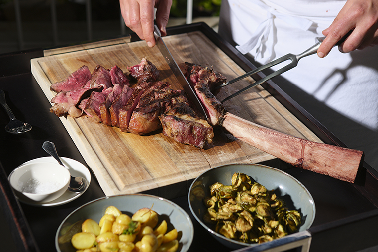 ทุกค่ำคืน รูฟท็อปแห่งนี้จะถูกเนรมิตให้กลายเป็นพื้นที่โชว์ศิลปะการปรุงอาหารของเชฟ โดยมีบาร์อาหารทะเลสด (Raw Bar) และวัตถุดิบชั้นเยี่ยมจากผู้ผลิตเนื้อระดับโลก ปรุงด้วยเตาย่างด้วยฟืน (Wood-fired Grill) หอมกลิ่นไฟ พร้อมไฮไลต์อย่างการเสิร์ฟซอสสูตรพิเศษหลากชนิดถึงที่โต๊ะ ไม่ว่าจะเป็น Béarnaise, chimichurri, ซอสหัวหอมแบบหวาน ฯลฯ นอกจากนี้ยังมีเบอร์เกอร์แสนอร่อย Bianca Burger ที่เป็นความสุขแบบ guilty pleasure ให้คุณได้ลิ้มลองวากิวชุ่มฉ่ำ หอมแดงย่างมะเขือเทศอิตาเลียน และชีสคุณภาพเยี่ยมเสิร์ฟในขนมปังอบสด พร้อมตราประทับเฉพาะของทางร้าน
