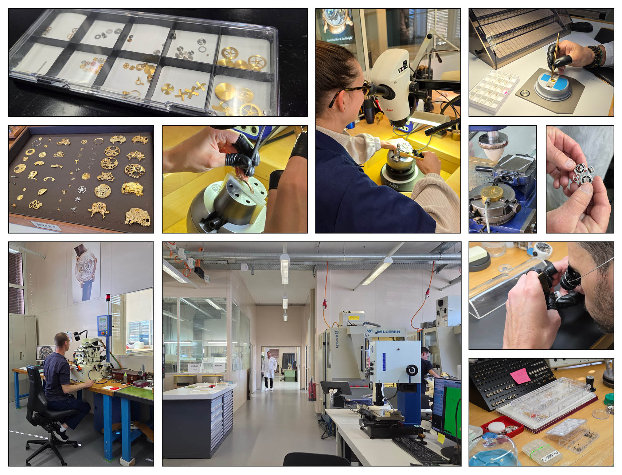 จากห้องรับรองลงไปยังชั้นล่าง ในพื้นที่ของการผลิตชิ้นส่วนขนาดเล็กด้วยเครื่องจักรทันสมัยอย่าง CNC และเครื่องมือเก่าแก่ที่ยังคงใช้งานในบางครั้ง ผลิตชิ้นส่วนกลไกชิ้นเล็กชิ้นน้อยตั้งแต่สกรู เฟือง ล้อ จักร วงแหวน ชิ้นส่วนทรงกลมต่างๆ ไปจนถึงเฟืองตัวเล็ก (pinion) ซึ่งคุณ Keith Strandberg - Head of Content ของ Bovet 1822 ที่นำทัวร์ในครั้งนี้บอกว่า Bovet ผลิตนาฬิกาเพียงปีละพันเรือนเท่านั้น แต่มีชิ้นส่วนที่แตกต่างกันมากมาย เวลาส่วนหนึ่งในแผนกนี้จึงใช้ไปกับการตั้งโปรแกรม บางครั้งเราก็ผลิตเพียงแค่ 200 ชิ้น หรือน้อยกว่านั้นถ้ามีความต้องการเร่งด่วนเข้ามา หลังจากได้ชมชิ้นส่วนในกล่องก็จะเห็นว่า บางชิ้นมีขนาดเล็กมาก ซึ่งทุกชิ้นที่ผ่านการผลิตในแผนกนี้ยังต้องไปผ่านกระบวนการตรวจสอบคุณภาพเพื่อให้ได้มาตรฐานอีกด้วย