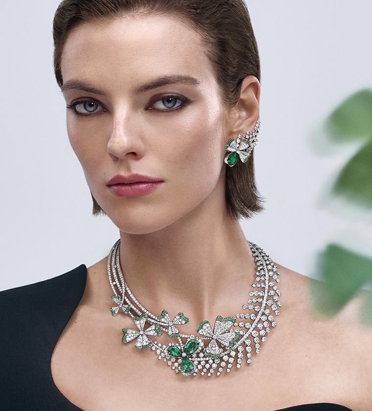 ในบทสนทนาแห่งธรรมชาติ Clover and Fern ได้ถ่ายทอดแรงบันดาลใจจากพืชพรรณอันเป็นสัญลักษณ์ของ Chaumet ผ่านงานจิวเวลรีชั้นสูงที่ผสานเพชรและมรกตล้าค่าไว้อย่างสมบูรณ์แบบ