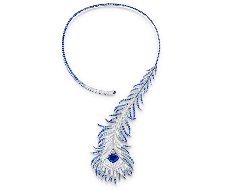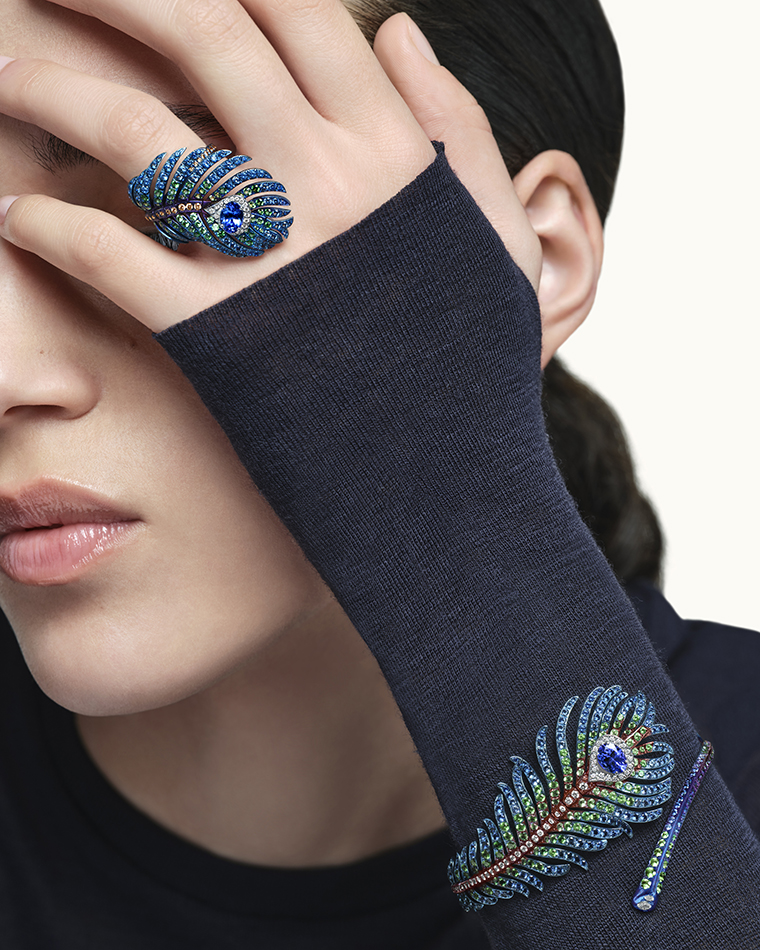 ในวันนี้ Plume de Paon ยังคงสะกดทุกสายตาด้วยเส้นสายทองคำขาวแกะสลักอย่างประณีต พร้อมประดับด้วยไพลิน ทิโซไวต์ และเพชร ที่เรียงร้อยกันอย่างประณีต พร้อมทับทิมทังซาไนต์ทรงรีที่ประดับอยู่ด้านบน สีสันของอัญมณีไล่เฉดตามเส้นสาย ราวกับขนนกยูงที่พลิ้วไหวอย่างมีชีวิตโดยฝีมือช่างผู้เชี่ยวชาญของเมซง ผลงานออกแบบที่ค้นพบจากการศึกษาเอกสารและตัวอย่างชิ้นงานสำคัญในแผนกจัดเก็บ บทสรุปแห่งความเป็นเลิศทางงานฝีมือผ่านโครงสร้างเปิดโปร่งของตัวเรือนแต่ละชิ้นคุณภาพเหนือชั้น ด้วยรัตนชาติคัดพิเศษและความพิถีพิถันของงานฝังแบบจิกไข่ปลา รวมถึงความประณีตในการประกอบชิ้นส่วนต่างๆ ผลงานในคอลเลกชั่นนี้ล้วนถ่ายทอดลวดลายเส้นขนนกยูงบนแพนหางได้อย่างอ่อนช้อย สมจริง ราวกับพลิ้วไหวตามสายลมอย่างมีชีวิตชีวา