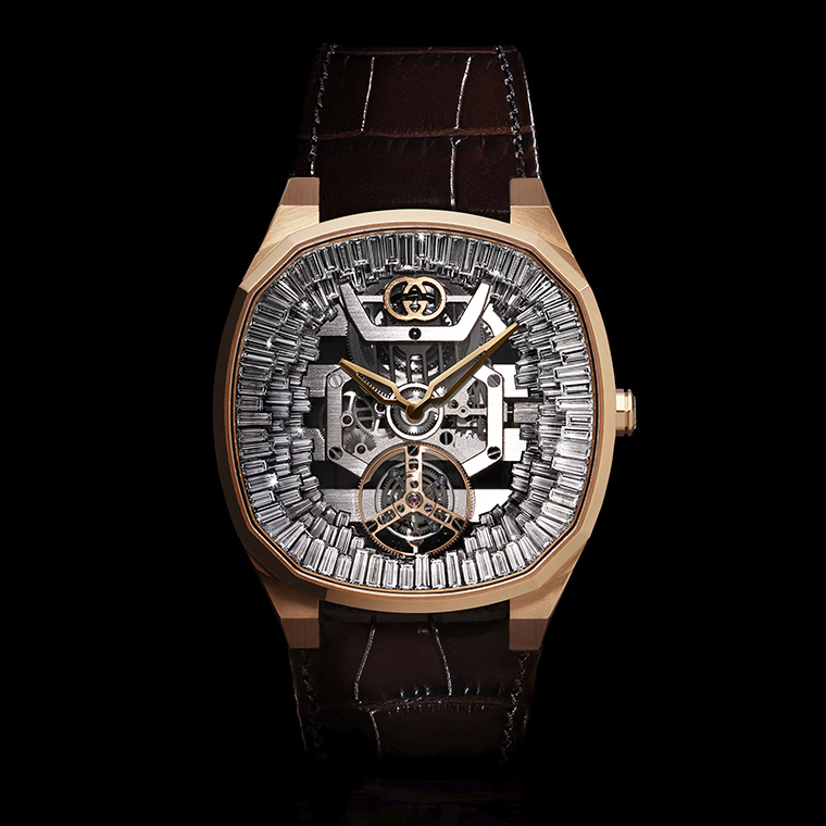 นับตั้งแต่การเปิดตัวกลไกเฉพาะของแบรนด์ในปี 2021 ตามมาด้วยทูร์บิญองแบบสเกเลตันในปี 2022 ปฏิทินร้อยปีในปี 2023 และกลไกตีบอกเวลาระบบ minute repeater ในปี 2024 คอลเลกชัน GUCCI 25H ได้ก้าวข้ามขีดจำกัดของศาสตร์การผลิตนาฬิกาในทุกๆ ปี และในปี 2025 นี้ก็ไม่ต่างกัน กับการเปิดตัวนาฬิกาสเกเลตันพร้อมกลไกทูร์บิญอง ที่ได้รับแรงบันดาลใจจากโคลอสเซียมแห่งกรุงโรมโบราณ