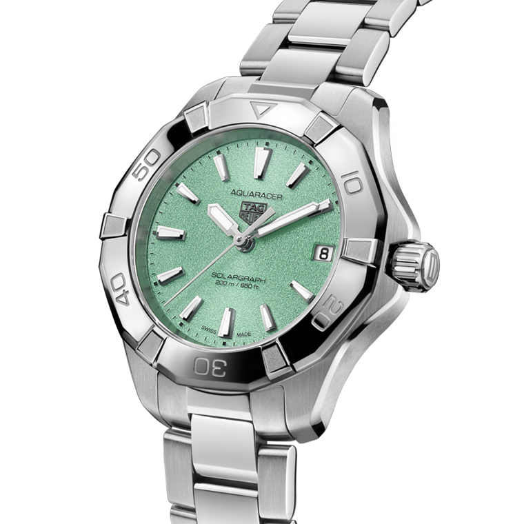 ดื่มด่ำกับความงดงามของแสงเหนือผ่าน TAG Heuer Aquaracer Professional 200 Solargraph เรือนเวลาขนาด 34 มม. ที่ผสานดีไซน์ร่วมสมัยเข้ากับความแกร่ง พร้อมกลไกพลังงานแสง Calibre TH50-01 ที่แปลงทั้งแสงธรรมชาติและแสงไฟให้เป็นพลังงาน ใช้งานได้นานสูงสุด 10 เดือนโดยไม่ต้องเปลี่ยนแบตเตอรี่ โดดเด่นด้วยหน้าปัดมุกแท้ เข็มและหลักบอกเวลาที่เคลือบ Super-LumiNova® และขอบตัวเรือนหมุนได้แบบซิกเนเจอร์