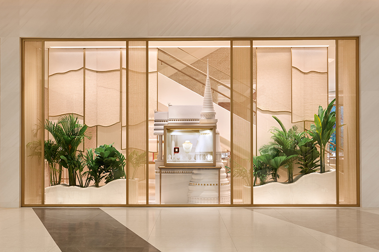 ผลงานสร้างสรรค์ที่ได้รับการออกแบบอย่างพิถีพิถันในทุกมุมของบูติคแห่งนี้ ไม่เพียงสะท้อนความงดงามของสถาปัตยกรรมไทย แต่ยังเป็นการเชิดชูงานศิลปะหัตถกรรมดั้งเดิม ตั้งแต่การประดับกระจกที่สะท้อนแสงระยิบระยับ ไปจนถึงศิลปะการต่อไม้ งานปักผ้า และงานลงรักปิดทอง ทุกองค์ประกอบล้วนถ่ายทอดความมุ่งมั่นของคาร์เทียร์ในการสืบสานมรดกทางวัฒนธรรมผ่านมุมมองแบบร่วมสมัย บูติคแห่งนี้จึงไม่ใช่เพียงสถานที่จัดแสดงเครื่องประดับ แต่เสมือนแกลเลอรี่มีชีวิต ที่หลอมรวมศิลปะ จินตนาการ และความประณีตเข้าไว้ด้วยกันอย่างลงตัว