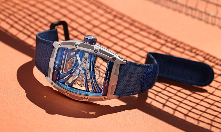 Challenge K. Khachanov มีตัวเรือนทรงตอนโน ขนาด 41 มม. ผลิตจากอะลูมิเนียมคุณภาพสูง น้ำหนักรวมเพียง 55 กรัม ทำให้นาฬิกามีความเบาและสวมใส่สบาย หน้าปัดสเกเลตันที่เผยให้เห็นกลไกไขลานคาลิเบอร์ CVS610 ชัดตา ประกอบสายผ้าสีน้ำเงินพร้อมแอปพลิเคชันหนังและระบบการปิดแบบเวโลโคร ทำให้สามารถปรับขนาดได้ง่ายและสะดวก