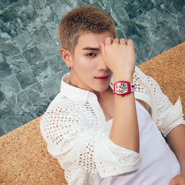 สกาย วงศ์รวี (@skywongravee), นานิ หิรัญกฤษฎิ์ (@hirunkit_), และโฟร์ท ณัฐวรรธน์ (@fourth.ig) ถ่ายทอดเสน่ห์ของ #FR2NCK MULLER Vanguard Beach Limited Edition ผลงานคอลแลบระหว่าง Franck Muller (@franckmuller_asiapacific) และสตรีทแบรนด์ชื่อดังจากญี่ปุ่น #FR2 (@fxxkingrabbits) ผ่านสามเฉดสีสดใส ทั้งสี Heatwave Red, Surf Blue และ Tropical Green ที่ผสานความหรูหรากับความสนุกสนาน เหมาะได้ทั้งลุคกลางวันและค่ำคืนที่ต้องการความโดดเด่น
