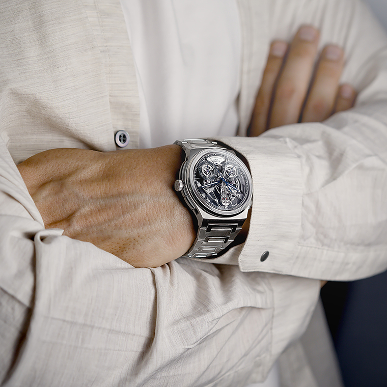 เหนือกว่าฟังก์ชันจับเวลาแบบ split-seconds นาฬิกาเรือนนี้ยังมีนวัตกรรม “Isolator” กลไกที่ช่วยลดแรงเสียดทานและการรบกวนความเที่ยงตรงขณะใช้งาน ถือเป็นการยกระดับโครโนกราฟแยกวินาทีของ Czapek ให้ก้าวล้ำไปอีกขั้น ทุกองค์ประกอบผ่านการตกแต่งด้วยงานหัตถศิลป์ haute horlogerie ตั้งแต่สกรูขัดเงาเงามัน คานและสะพานจักรที่ตัดมุมด้วยมือ ไปจนถึงโรเตอร์ทองกุหลาบรีไซเคิล 5N ที่ประดับอยู่ด้านหลัง สายข้อมือแบบอินทิเกรตสะท้อนรายละเอียดเดียวกันด้วยผิวปัดด้านสลับขัดเงาอย่างกลมกลืนกับตัวเรือนขนาด 42.5 มม.