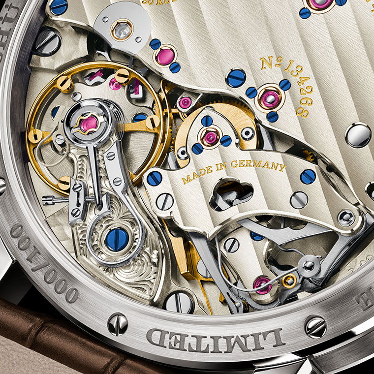 กลไกไขลานด้วยมือ L094.1 ประกอบด้วยชิ้นส่วนกว่า 390 ชิ้น ผลิตและประกอบซ้ำถึงสองครั้งเพื่อความสมบูรณ์แบบ โดยมีสปริงกำลังและบาลานซ์สปริงที่ผลิตขึ้นเองภายในโรงงาน ทำให้สามารถปรับจูนให้ทำงานสอดคล้องกันได้อย่างลงตัว กลไกนี้ยังสะท้อนเกียรติประวัติของ Richard Lange บุตรชายคนโตของ Ferdinand Adolph Lange ผู้ซึ่งมีบทบาทสำคัญต่อความก้าวหน้าของศาสตร์การทำนาฬิกาความเที่ยงตรง หนึ่งในผลงานที่ยิ่งใหญ่ที่สุดของเขาคือการพัฒนาโลหะผสมสำหรับทำสปริงนาฬิกา ซึ่งยังคงใช้อย่างแพร่หลายในปัจจุบัน