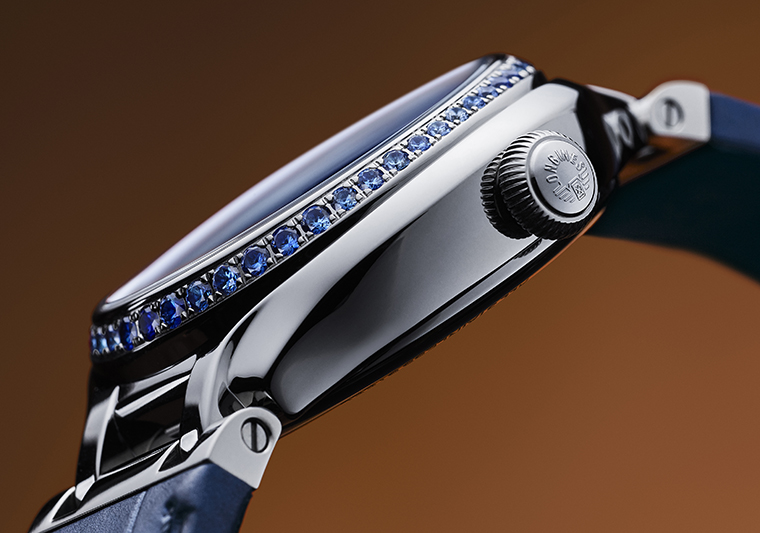 หน้าปัดนาฬิกาถูกรังสรรค์จากหอยมุกในเฉดสีน้ำเงินใหม่ที่เรียกว่า “celestial blue” และประดับด้วยหลักชั่วโมงเพชร 14 เม็ดที่เข้าคู่กับหมู่ดาวแซฟไฟร์บนขอบตัวเรือนได้อย่างลงตัว พร้อมเสริมความงามด้วยสายหนังจระเข้สีน้ำเงินแห่งท้องฟ้าที่เปล่งประกายคล้ายกับหน้าปัดนาฬิกา รังสรรค์เรือนเวลาอันแสนพิเศษนี้ให้เป็นตัวแทนของความสง่างามแห่งดวงจันทร์ที่ทอดยาวจากขอบตัวเรือนไปจนถึงข้อมือ ทุกองค์ประกอบทำงานสอดประสานกันอย่างสมบูรณ์แบบเพื่อเฉลิมฉลองความงามอันไร้ขีดจำกัดของท้องฟ้ายามค่ำคืน
