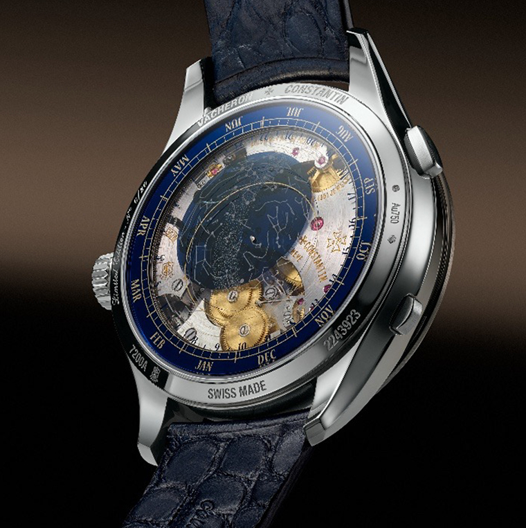 ฉากหลังของหน้าปัดงดงามราวภาพวาด กลุ่มดาวเหนือกรุงเจนีวาในวันที่ 17 กันยายน ค.ศ. 1755 ซึ่งเป็นวันก่อตั้งเมซง ถ่ายทอดความแม่นยำระดับสูงสุด ด้วยความร่วมมือจากนักดาราศาสตร์ของหอดูดาวเจนีวา แผนที่ท้องฟ้าสามารถติดตามตำแหน่งดาวเรียลไทม์ คลาดเคลื่อนเพียงหนึ่งวันในรอบ 9,130 ปี
