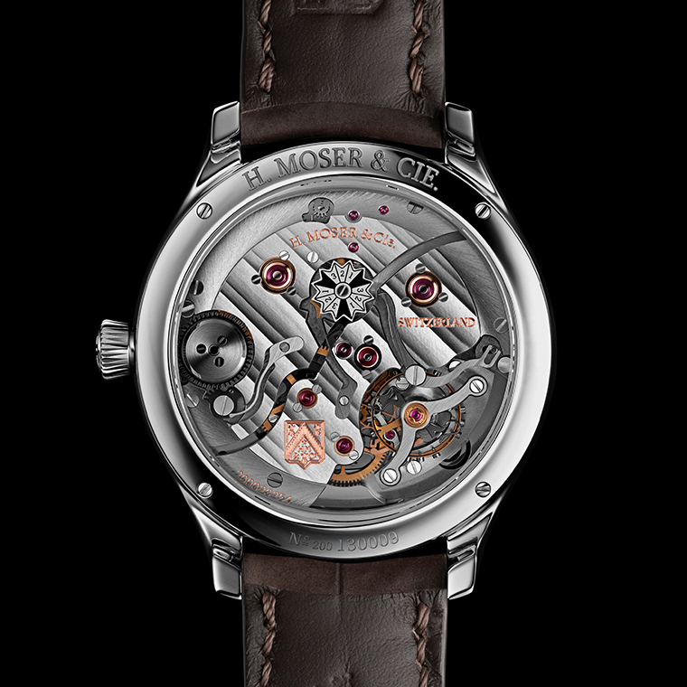 นอกจากนี้ H. Moser & Cie. ได้เลือกที่จะถ่ายทอดแนวคิดมินิมัลลิสต์ของแบรนด์ ผ่านการประทับตราสัญลักษณ์บนหน้าปัดด้วยแลคเกอร์แบบ โปร่งใส เกิดเป็นลายเซ็นลับที่ทําให้หน้าปัดโดดเด่นอย่างเต็มที่ นอกจากนี้ยังมีอีกเข็มนาฬิกาที่ใช้บอกเดือนอยู่ตรงกลาง บริเวณล่างของหน้าปัด พร้อมด้วยหน้าต่างวันที่ขนาดใหญ่ ณ ตําแหน่ง 3 นาฬิกา ที่มาพร้อมฟังก์ชัน “Flash Calendar” ซึ่งสามารถเปลี่ยนวันที่ได้ทันทีที่เข็มนาฬิกาเดินถึง เวลาเที่ยงคืน อีกทั้งยังมีตัวบอกพลังงานสํารองที่ตําแหน่ง 9 นาฬิกา พร้อมแสดงการทํางานของกลไกอัตโนมัติที่อยู่ได้นานถึง 7 วัน การตั้งเวลาและ วันที่ก็สามารถทําได้อย่างง่ายดายผ่านเม็ดมะยม ซึ่งปรับได้ทุกเมื่ออย่างสะดวก และปลอดภัยต่อกลไก แสดงให้เห็นว่าเมื่อนําตัวเรือนทองคําขาว ขนาด 42 มม. มาจับคู่กับสายหนังจระเข้สีน้ําตาลเข้ม เรือนเวลา Endeavour Perpetual Calendar Smoked Salmon ได้เผยความสง่างาม แบบสมดุล คลาสสิก แต่ไม่ซ้ําใคร เป็นที่ประจักษ์ว่าผลงานสุดพิเศษชิ้นนี้ได้ผสานประเพณีเข้ากับความเป็นอิสระ โดยปราศจากความหวือหวา แต่ก็ ไม่ลดทอนความเป็นเลิศ ทําให้เรือนเวลาเรือนนี้เป็นตัวแทนที่ถ่ายทอดมุมมองเฉพาะตัวของ H. Moser & Cie. ต่อ Haute Horlogerie ได้อย่างแท้จริง
