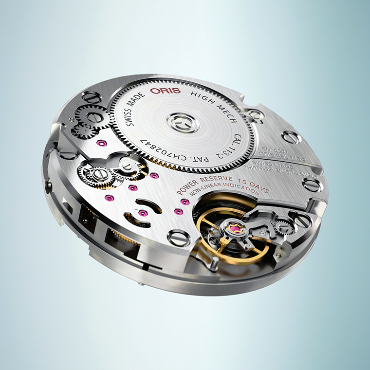 BF ในมุมหนึ่ง เรารู้สึกว่า 10 วันเป็นตัวเลขที่โดดเด่นและจดจำง่าย แต่เราก็รู้ดีว่านี่คือคุณสมบัติที่แทบไม่เคยพบในนาฬิกาจักรกล และแน่นอนว่าไม่เคยปรากฏในนาฬิกาของ Oris ปรัชญาของ Oris คือเราไม่ต้องการทำให้ซับซ้อนเกินไป ดังนั้นทางออกคือการคงโครงสร้างแบบกระปุกลานเดี่ยวไว้ และใช้เมนสปริงเดี่ยวที่ยาวเป็นพิเศษ วิธีนี้ทำให้เราสามารถผลักดันขีดจำกัดได้ โดยไม่ลดทอนคุณค่า ฟังก์ชั่น หรือดีไซน์ไป