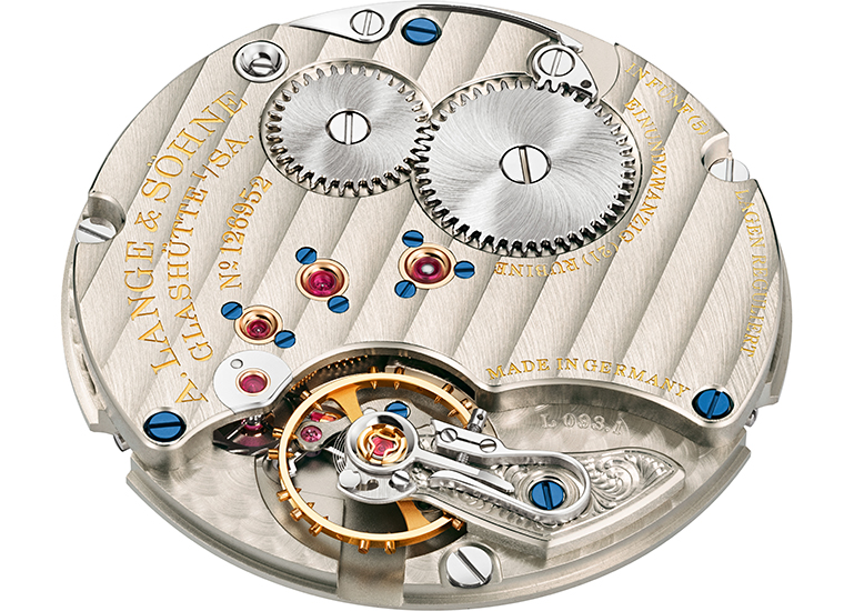 เสน่ห์ของ Saxonia Thin ไม่ได้อยู่แค่เพียงภายนอก หากยังสะท้อนอยู่ในรายละเอียดเล็กที่สุดของกลไกภายใน ความสมดุลระหว่างเฟืองเม็ดมะยมและเฟืองตลับลาน รูปทรงเด่นของสปริงสต็อปคลิก เส้นโค้งของแท่นเครื่องสามส่วนสี่ที่รังสรรค์จากเงินเยอรมันที่ปราศจากการชุบ ไปจนถึงการจัดวางสกรูสีน้ำเงินที่ผ่านความร้อนสูงวางรอบหลุมทับทิมทองคำ "ความงามของการผสานระหว่างแท่นเครื่องเงินเยอรมัน ทับทิมกันการเสียดสีสีแดง และสีน้ำเงินของบลูสกรู ทำให้หลุมทับทิมสีทองสามตำแหน่งเปล่งประกายอย่างงดงาม" Antony de Haas ผู้อำนวยการฝ่ายพัฒนาผลิตภัณฑ์กล่าวไว้