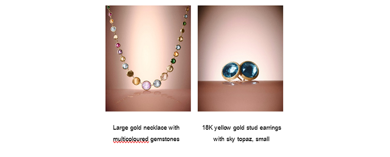 Jaipur Colour บทสดุดีถึง ‘เมืองสีชมพู’ แห่งราชสถาน ประเทศอินเดีย แหล่งเจียระไนอัญมณีเลื่องชื่อของโลก คอลเลกชันนี้โดดเด่นด้วยการนำเสนออัญมณีหลากสีสันที่ผ่านการเจียระไนเหลี่ยมมุมเป็นเอกลักษณ์เฉพาะตัว โอบล้อมด้วยตัวเรือนทองคำ 18 กะรัต รูปทรงอสมมาตร ได้แรงบันดาลใจจากธรรมชาติ โดยมีชิ้นงานเด่นคือ สร้อยคอทองคำพร้อมอัญมณีหลากสี (Large gold necklace with multicoloured gemstones) เปี่ยมด้วยชีวิตชีวา และ ต่างหูทองคำประดับสกายโทแพซ (18K yellow gold stud earrings with sky topaz, small) งดงามเหนือกาลเวลา