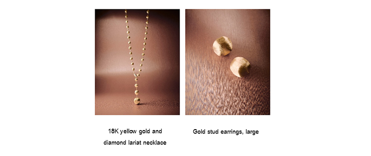 Africa คอลเลกชันที่ปลุกมนต์ขลังของค่ำคืนที่เปี่ยมด้วยดวงดาวและเนินทรายให้กลับมีชีวิตชีวา ผ่านองค์ประกอบทรงกลมดูเต็มด้วยปริมาตรแต่กลับมีน้ำหนักเบาอย่างน่าอัศจรรย์ แต่ละชิ้นถูกแกะสลักด้วยมือเพื่อสร้างพื้นผิวซาตินละเอียดอ่อน เกิดเป็นความงามบริสุทธิ์ใน ต่างหูทองคำทรงกลมออร์แกนิคขนาดใหญ่ (Gold stud earrings, large) และความหรูหราซับซ้อนใน สร้อยคอโซ่ทองคำพร้อมห่วงเกี่ยวประดับเพชร (18K yellow gold and diamond lariat necklace) ที่ทิ้งตัวอย่างงดงาม
