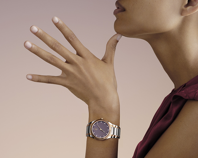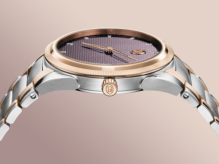 สายนาฬิการังสรรค์ด้วยการไล่ระดับข้อต่ออย่างละเอียดราวกับสายน้ำทองคำที่พลิ้วไหวไปตามข้อมือด้วยสัดส่วนที่ลงตัวทุกองศา สตีลและโรสโกลด์ประสานกันอย่างนุ่มนวล แสดงถึงความหรูหราในแบบที่ “จับต้องได้” ทั้งยังให้สัมผัสทางสายตาและปลายนิ้วที่เปี่ยมเสน่ห์