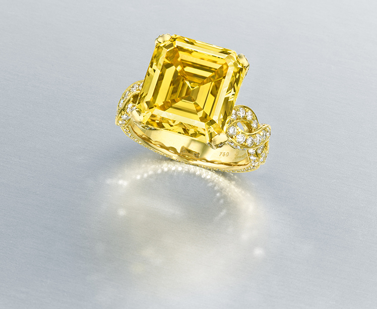 แหวนเพชรและเพชร Fancy Vivid Yellow/VVS1