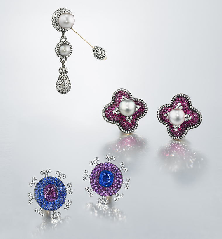 ต่างหู JAR ประดับแซฟไฟร์ อะเมทิสต์ และเพชร