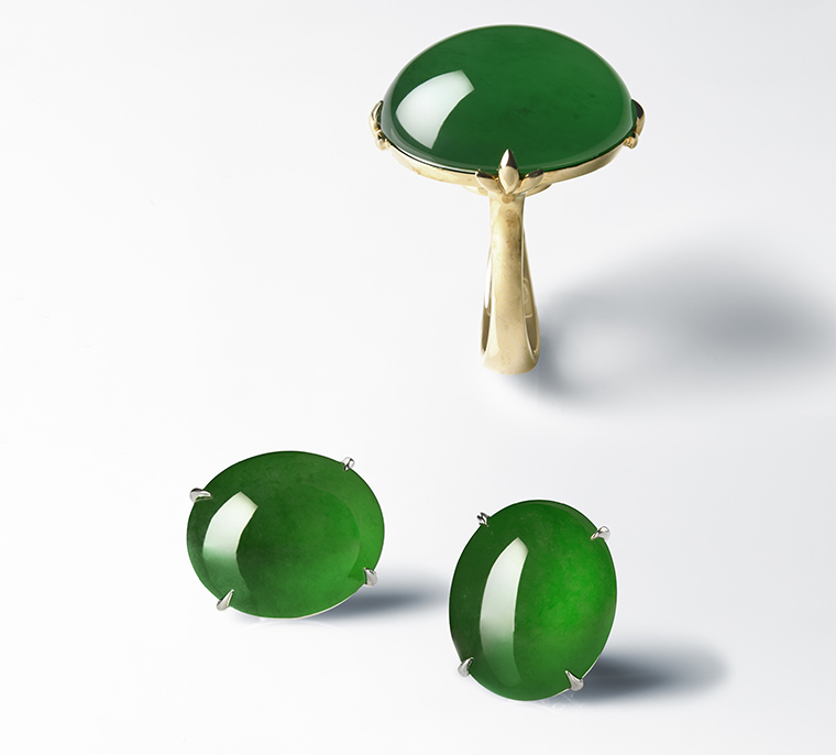 ต่างหูหยกคาโบชอง & แหวนหยกคาโบชอง