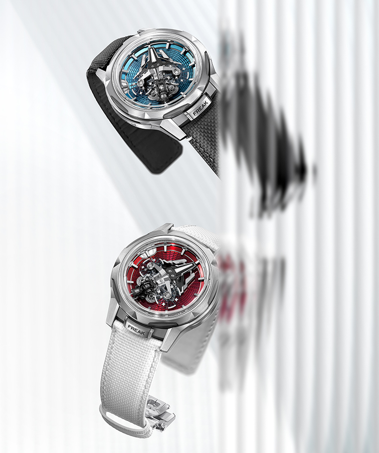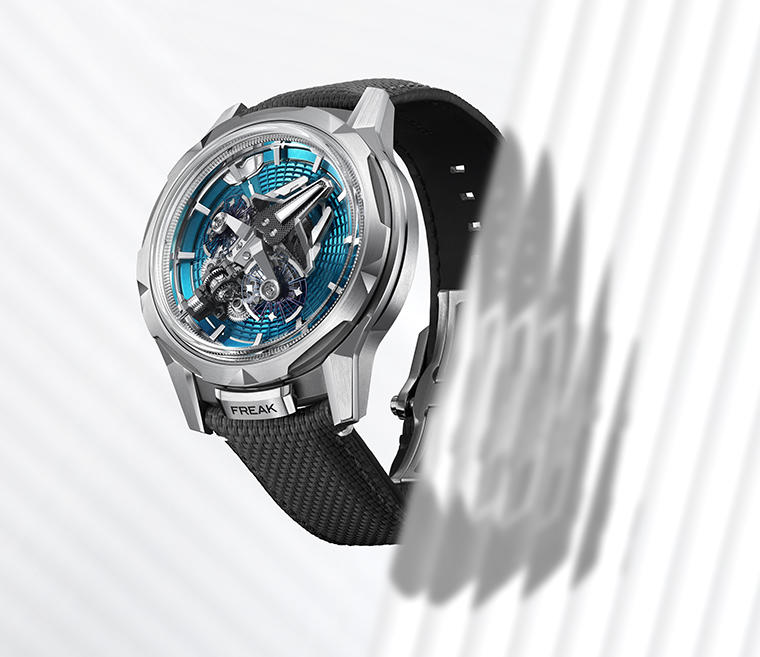 วิสัยทัศน์นี้ถูกยกระดับสู่จุดสูงสุดด้วย Freak S สุดยอดนาฬิกาบอกเวลาที่ซับซ้อนที่สุด ผลงานที่ท้าทายขีดจำกัดของศาสตร์การผลิตนาฬิกาชั้นสูง ความคิดสร้างสรรค์ และเทคโนโลยี ด้วยออสซิลเลเตอร์คู่ เทคโนโลยีซิลิคอนและ DIAMonSIL ดิฟเฟอเรนเชียลที่เล็กที่สุดในโลก โครงสร้าง 3 มิติที่โดดเด่นที่ขยายออกไปในหกมิติ และระบบไขลานอัตโนมัติ Grinder® ที่มาปฎิวัติวงการ