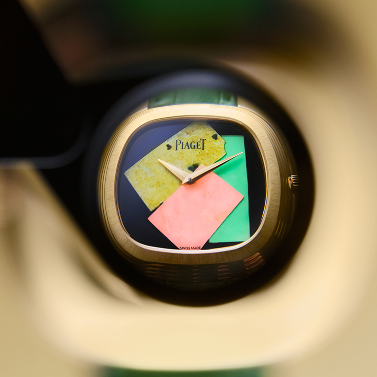 จากวันนั้นถึงวันนี้ Piaget จึงได้รังสรรค์นาฬิกาที่ตีความงานศิลป์ของ Warhol อย่างวิจิตรบรรจง สู่นาฬิกาแคปซูลคอลเลกชั่นรุ่นพิเศษ “Andy Warhol Watch ‘Collage’ Limited Edition” ที่การตกแต่งหน้าปัดโดดเด่นด้วยการฝังหินมีค่าหลากสีสัน อีกทั้งจัดวางให้แลดูเหมือนงานศิลปะแบบคอลลาจที่เรียงร้อยเป็นภาพแอบสแตรค ซึ่งทั้งหมดได้แรงบันดาลใจจากภาพถ่ายพอร์เทรตด้วยกล้องโพลารอยด์ที่มีชื่อเสียงของ Warhol ในปี 1986 นาฬิกาเรือนนี้มาในตัวเรือนขนาด 45 มม. ผลิตขึ้นจาก เยลโลว์โกลด์ 18 กะรัต อันเป็นวัสดุล้ำค่าที่คัดสรรมาเพื่อรำลึกถึงนาฬิกาของ Warhol ในปี 1973 ซึ่งไม่มีจำหน่ายในคอลเลกชั่นนาฬิกา Andy Warhol รุ่นอื่นๆ และนาฬิการุ่นนี้ผลิตเพียง 50 เรือนเท่านั้น