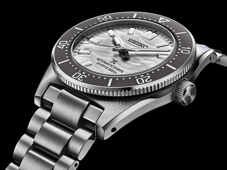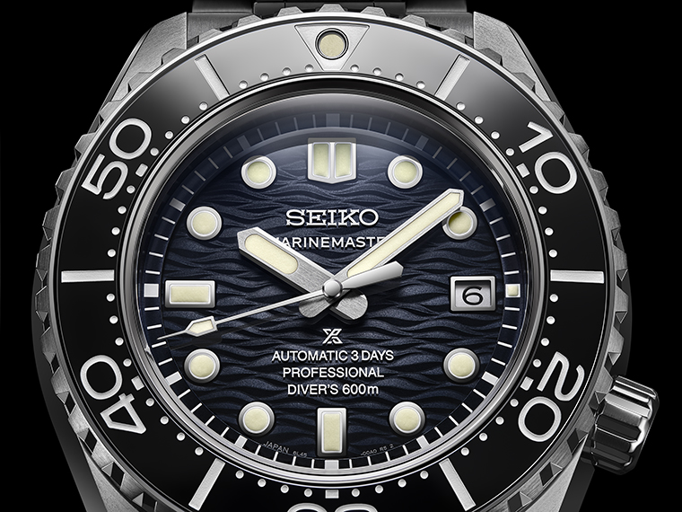 ส่วนนาฬิกาอีกหนึ่งรุ่นพิเศษที่รังสรรค์ขึ้นให้เป็นเรือนเวลาระดับพรีเมียมสำหรับมืออาชีพและนักสะสมโดยเฉพาะอย่าง Seiko Prospex Marinemaster Professional Diver’s 60th Anniversary Limited Edition “Marinemaster เป็นเสมือนตัวแทนของการเป็นนาฬิกาดำน้ำอันสมบูรณ์แบบของ Seiko และสำหรับในรุ่นพิเศษนี้มีสิ่งที่โดดเด่นตั้งแต่แรกเห็นเลยคือชิ้นส่วนที่เป็นสีดำบริเวณหูสายทั้งด้านบนและล่าง ซึ่งเป็นส่วนที่ผลิตขึ้นโดยเฉพาะเพื่อยึดตัวเรือน ขอบตัวเรือน และสายนาฬิกาให้แน่นหนา และเพิ่มความทนทานต่อแรงกัดดันได้ อีกหนึ่งจุดเด่นที่สำคัญสำหรับรุ่นนี้คือหน้าปัดที่ทีมงานตั้งใจออกแบบให้มีความรู้สึกถึงทะเลลึก เมื่อมองดูจะเห็นเป็นเงาของคลื่นที่อยู่ใต้ตัวอักษรบนหน้าปัด โดยเกิดขึ้นจากเทคนิค clear layer ที่เคลือบไว้ด้านบนพื้นหน้าปัดอีกทีทำให้ดูราวกับมีน้ำอยู่ในหน้าปัด โดยเกิดจากการตกกระทบของแสง 2 ชั้นด้วยกันคือชั้นของ clear layer และชั้นของลายคลื่นน้ำจึงเกิดมิติที่มีความซับซ้อนแต่ทว่าสวยงาม”