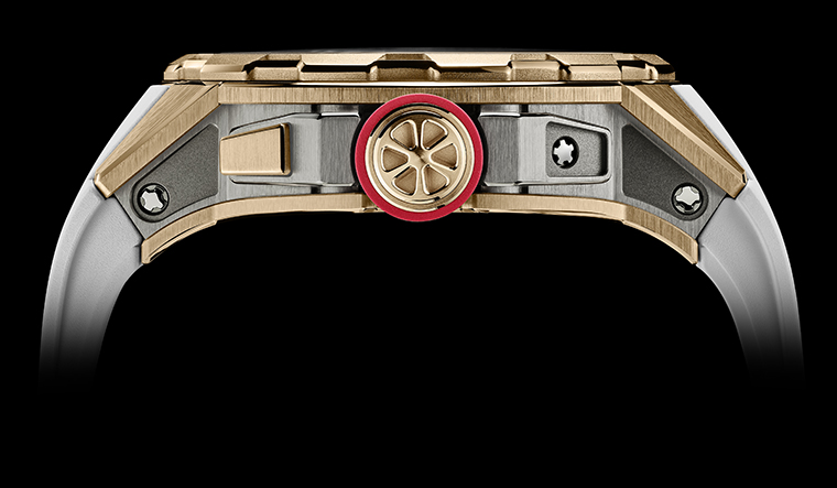 ความสมดุลระหว่างความงามและหน้าที่สะท้อนผ่านทุกจุดของการออกแบบ โดยเฉพาะ ช่องวันที่ขนาดใหญ่ที่โดดเด่นที่ตำแหน่ง 12 นาฬิกา สร้างจากดิสก์ไทเทเนียมโปร่งแสงสองชั้น ปรับได้ง่ายด้วยปุ่มกดทองคำที่ตำแหน่ง 11 นาฬิกา ทุกองค์ประกอบถูกจัดวางราวกับเวทีที่เปิดเผยให้เห็นจังหวะของเวลาในทุกการหมุน