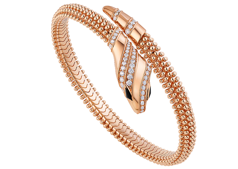 รังสรรค์รูปทรงภายใต้ความเปล่งประกายของโรสโกลด์ ผลงานใหม่เหล่านี้ได้ถ่ายทอดความโดดเด่นของลูกปัดที่มีความยืดหยุ่นอันเป็นสัญลักษณ์ของคอลเลคชั่น โดยเสริมความรุ่มรวยด้วยความลื่นไหลได้ และความเย้ายวนดึงดูดใจที่สัมผัสและรับรู้ได้ในแต่ละงานออกแบบ เช่นในสร้อยคอที่โอบรับรอบลำคอได้อย่างกลมกลืนและนุ่มนวล พร้อมด้วยหัวและหางของงูที่มาบรรจบกันอย่างสง่างามด้านหน้า ขณะที่กำไลแบบขดเดียวได้มอบความโดดเด่นอันเปี่ยมด้วยพลังไว้รอบข้อมือ รวมถึงเปล่งประกายเรืองรองด้วยการประดับเพชรแบบเต็มพื้นที่หรือพาเว่ทั้งบนหัวและหางของงู ตลอดจนดวงตาออนิกซ์ที่เป็นดั่งพลังดึงดูดอันเย้ายวนใจจากภายในของสัตว์ในตำนานนี้ พร้อมด้วยโครงร่างอันโดดเด่นของเข็มกลัด ด้วยความสง่างามอันไร้นิยามแห่งเพศที่โอบกอดสไตล์อันร่วมสมัย ทั้งยังสื่อสารได้อย่างดีถึงจิตวิญญาณแห่งการเปลี่ยนแปลง ด้วยการนำเสนอวิธีการสวมใส่อันไม่มีสิ้นสุด และการตีความใหม่ให้กับสัญลักษณ์อันเป็นไอคอนิกนี้