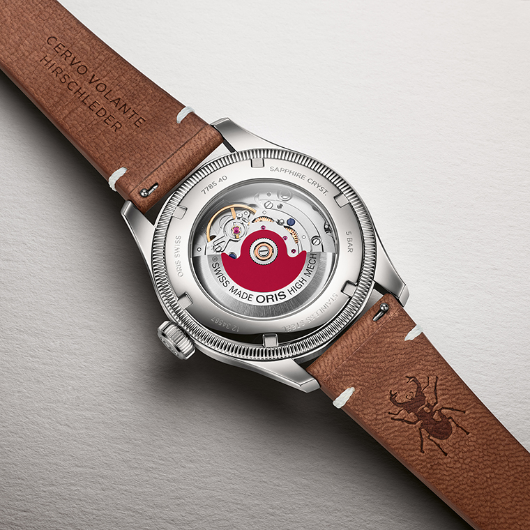 Cervo Volante ถือเป็นหนึ่งในพันธมิตรที่ทรงคุณค่าที่สุดของ Oris โดยผลิตสายนาฬิกาและแอ็กเซสซอรีจากหนังกวางที่ได้จากแหล่งอย่างยั่งยืนและผ่านกระบวนการฟอกหนังที่เป็นมิตรต่อสิ่งแวดล้อม ในทุกปี หน่วยงานรัฐของสวิสจะกำกับดูแลโครงการควบคุมจำนวนประชากรกวางในป่าแอลป์อย่างเข้มงวด เพื่อปกป้องผืนป่าอันมีความสำคัญยิ่งต่อระบบนิเวศของประเทศสวิตเซอร์แลนด์ กระบวนการนี้ก่อให้เกิดหนังกวางจำนวนมากที่มักถูกทิ้ง แต่ Cervo Volante ได้เปลี่ยนให้กลายเป็นผลิตภัณฑ์อันสวยงาม โดยแต่ละชิ้นยังคงไว้ซึ่งร่องรอยและความเป็นธรรมชาติดั้งเดิมของหนัง ที่หลายบริษัทอาจมองเป็นตำหนิและทิ้งหนังเหล่านี้ไป